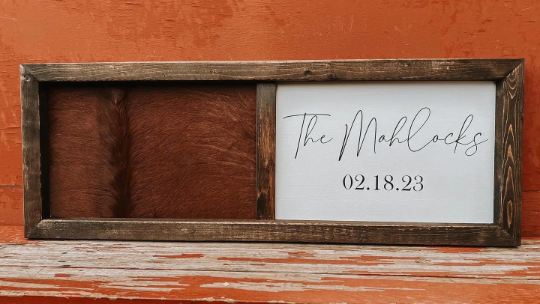 This is the half cowhide sign everybody has been asking about! It is made with real cowhide and premium lumber. 6 -8 week processing times. I can rush orders if needed! All sales are FINAL